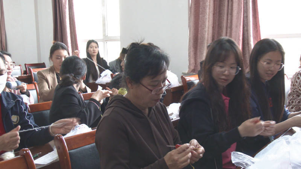 培訓班上,老師為大家講解了起立針、短針、加針、引拔針等常用針法的編織技巧,并現場答疑解惑,學員們互相分享鉤織心得、展示作品。