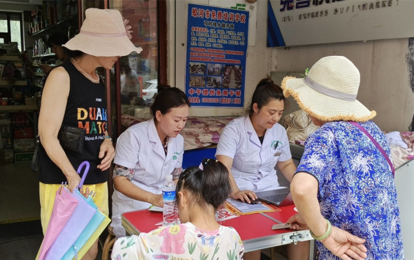 醫務人員宣講家庭醫生簽約服務的意義,介紹簽約流程和注意事項,為居民提供血壓、血糖、聽力、視力等檢查,讓更多人了解和關注家庭醫生簽約服務。
